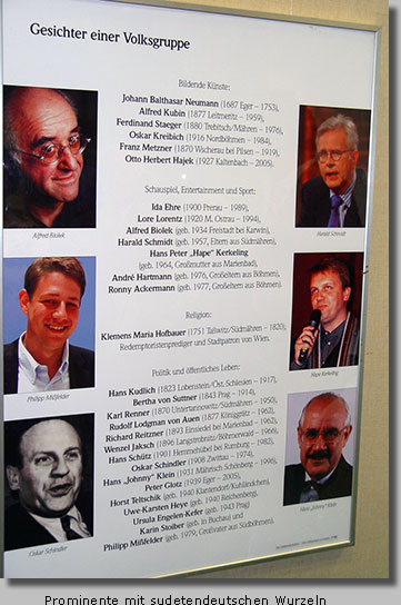 Im Haus der Heimat in Wiesbaden wurde die Ausstellung "Die Sudetendeutschen- Eine Volksgruppe im Herzen Europas" eröffnet. Das Interesse an diesem Thema zeigte sich an der großen Zahl der Teilnehmer. Es war kein Stuhl mehr zu bekommen. Die Ausstellung befasst sich mit dem Verhältnis zwischen Sudetendeutschen und Tschechen von der Ostsiedlung bis hin zur Gegenwart. Es wird auch auf das Münchner Abkommen von 1938 eingegangen, durch das die von Deutschen bewohnten Gebiete der Tschechoslowakei an das Deutsche Reich abgetreten wurden. Die Gültigkeit des Münchner Abkommens ist heute noch ein Zankapfel. Weiter werden die Vertreibung, die Brandtsche Ostpolitik, die samtene Revolution in der Tschechoslowakei, die Lage der deutschen Minderheit in der Tschechischen Republik, der Kosovo Krieg und der Beitritt der Tschechischen Republik zur Europäischen Union beleuchtet, um einige Beispiele aufzuführen. Auch sind auf einer Tafel Prominente zu sehen, die im Sudetenland geboren wurden oder sudetendeutsche Wurzeln haben. Zu nennen sind hier beispielsweise, Alfred Biolek, Harald Schmidt, Hans Peter "Hape" Kerkeling, Oskar Schindler, Peter Glotz, Horst Teltschick, Uwe Karsten Heye, Ursula Engelen- Kefer und Karin Stoiber. Bei der Eröffnung der Ausstellung bemängelte der Kulturreferent des Bundes der Vertriebenen (BdV), Otmar Schmitz, die Unkenntnis über diesen Teil der Geschichte, der in den Schulen oft zu kurz komme. In ihrem Grußwort, versprach Stadträtin Helga Skolik, sie wolle sich bei der Schuldezernentin dafür einsetzen, dass die Wiesbadener Schulen die Ausstellung besuchten. Rudolf Friedrich, Landesbeauftragter der Hessischen Landesregierung für Heimatvertriebene und Spätaussiedler, wies auf die Aufnahme von etwa 400.000 Sudetendeutschen nach Zweiten Weltkrieg in Hessen hin. Er lobte die Aufbauleistung der Heimatvertriebenen. Der Landesvorsitzende des BdV und Landesobmann der Sudetendeutschen Landsmannschaft, Alfred Herold, sprach auch das oft fehlende Wissen über das Schicksal der Sudetendeutschen an. "Wir müssen unser kulturelles Erbe in die Zukunft tragen", sagte er an die Teilnehmer gewandt. In die Ausstellung führte der Generalsekretär des Sudetendeutschen Rates, Albrecht Schläger, ein. Als Ziel nannte er, Wissensdefizite über politische und völkerrechtliche Zusammenhänge auszugleichen. Meinungsverschiedenheiten würden nicht verschwiegen. Die Ausstellung solle jedoch zusammenführen. "Wer die Zukunft meistern will, muss die Vergangenheit bewältigen", ist seine Devise. Der Generalsekretär skizzierte die deutsche und tschechische Geschichte. Er ging auf die Nationalitätenkonflikte im 19. Jahrhundert ein. Dabei ließ er nicht aus, dass mit dem "Mährischen Ausgleich" ein Weg zum Zusammenleben gefunden wurde. Der Erste Weltkrieg hätte das aber zunichte gemacht. Auf die Pariser Friedenskonferenz eingehend, bemerkte er, die Siegermächte hätten die Landkarte "neu gezeichnet". Das Selbstbestimmungsrecht der Völker sei mit Füßen getreten worden. Zu den Ereignissen des 4.März 1919 führte Schläger an, die friedliche Demonstration der Sudetendeutschen, bei der 54 Teilnehmer vom tschechischen Militär erschossen wurden, hätte Benesch bei den Siegermächten als Aufstand bezeichnet. Weiter zeigte er die Bedrückungsmaßnahmen, die die Sudetendeutschen nach dem Ersten Weltkrieg erleiden mussten, auf. Auch sprach er das Münchner Abkommen und die Zeit danach an. Die Sudetendeutschen seien damals verblendet gewesen. Als Kuriosum stellte er heraus, die Nationalsozialisten hätten bei einer Untersuchung in Böhmen herausgefunden, wonach 45 Prozent der Tschechen und nur 25 Prozent der Sudetendeutschen dem germanischen Ideal entsprachen. Auf die Vertreibung eingehend, fügte Schläger hinzu, "Die Vertreibung war Unrecht, Vertreibung ist auch heute noch Unrecht. Die Tschechische Republik muss die völkerrechtlichen Grundsätze umsetzen". In diesem Zusammenhang verwies er auf diesbezügliche Resolution des Europäischen Parlaments. Die Weitergeltung des so genannten Straffreistellungsgesetzes könne nicht hingenommen werden. Die Menschenrechte seien unteilbar. Er rief Tschechen und Deutsche auf, die Geschichte gemeinsam aufzuarbeiten. Diese Friedensarbeit müsse weiter beschritten werden. Schläger brach eine Lanze für Hessen und für Ministerpräsident Roland Koch. Die Übernahme der Patenschaft von Hessen über das Zentrum gegen Vertreibungen bezeichnete er als ein "großartiges Signal". Bayern musste daher zwangsgemäß folgen. Während Hessen die Mittel zur Förderung der Vertriebenenarbeit erhöhte, nahm Bayern erhebliche Kürzungen vor. So seien die Zuwendungen für den Sudetendeutschen Rat auf Null gesetzt worden. Ministerpräsident Beckstein habe auf Schreiben überhaupt nicht geantwortet. "Ich sage als Sozialdemokrat, dass Hessen hier vorbildlich gearbeitet hat", fügte Schläger hinzu. Von der Stadtverordnetenversammlung der Landeshauptstadt Wiesbaden nahmen Ingrid Raiss und Monika Mucha (beide CDU) teil. Die Ausstellung ist bis zum 30.September 2008 im Haus der Heimat in Wiesbaden, Friedrichstraße 35, zu sehen. Informationen erteilt das Kulturreferat des BdV, Telefon 0611 / 360 19 17
